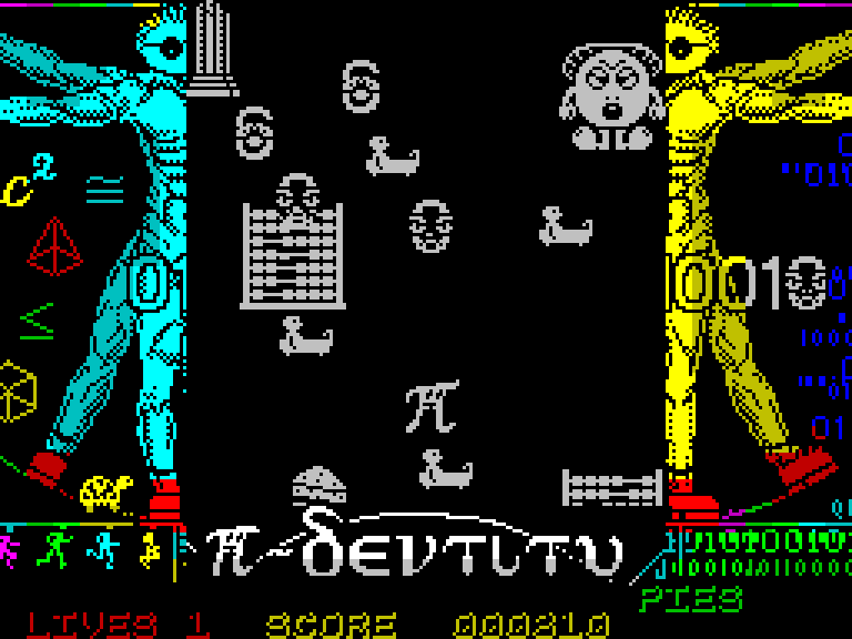 За главного героя в этой игре — символ числа Пи, который летит сверху вниз, старается не наткнуться на всякие колонны и отстреливает врагов своим значением до четвёртого знака после запятой. Выглядит всё это столь же непрезентабельно, как и год назад, во время анонса — спрайты кошмарные, анимация так себе, без инструкции и не поймёшь, чего нужно избегать, а что нужно хватать ради временной неуязвимости (подсказка — символ бесконечности) или пополнения арсенала (подсказка — кусочки пирога). Зато Энди Грин нарисовал очередную симпатичную заставку, во время которой играет приятная биперная музыка. И то хлеб!