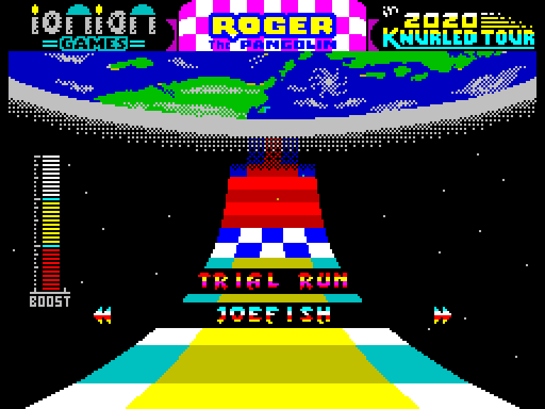 Встречайте Roger The Pangolin In 2020 Knurled Tour — аркадную гонку, напоминающую S.T.U.N. Runner, F-Zero, WipeOut и, наверное, Sonic R, поскольку главный герой очень сильно смахивает на Наклза, а заставка и название намекают на него ещё сильнее.