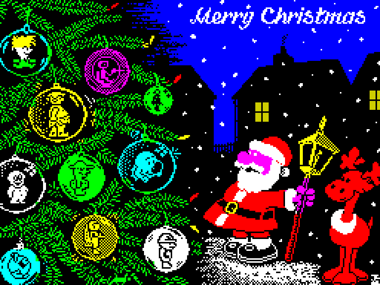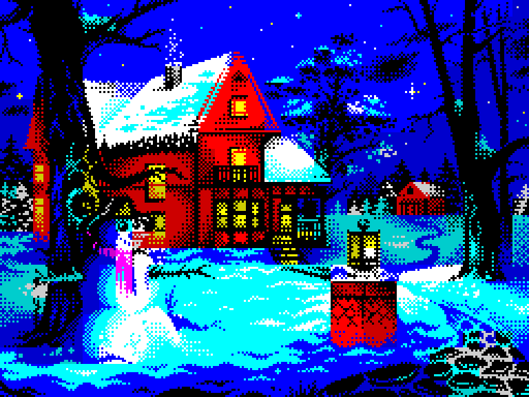 Что до нашего сайта, то планов у нас по-прежнему громадьё, но мы, пожалуй, не будем их озвучивать, чтобы не сглазить (и не накликать очередное несчастье на весь мир). Просто по старой традиции поделимся с вами подборкой хороших картинок для ZX Spectrum на зимнюю и новогоднюю тематику. Большое спасибо их авторам: prof4d, Gas13, r0bat, Vassa, Andy Green и Mixer.