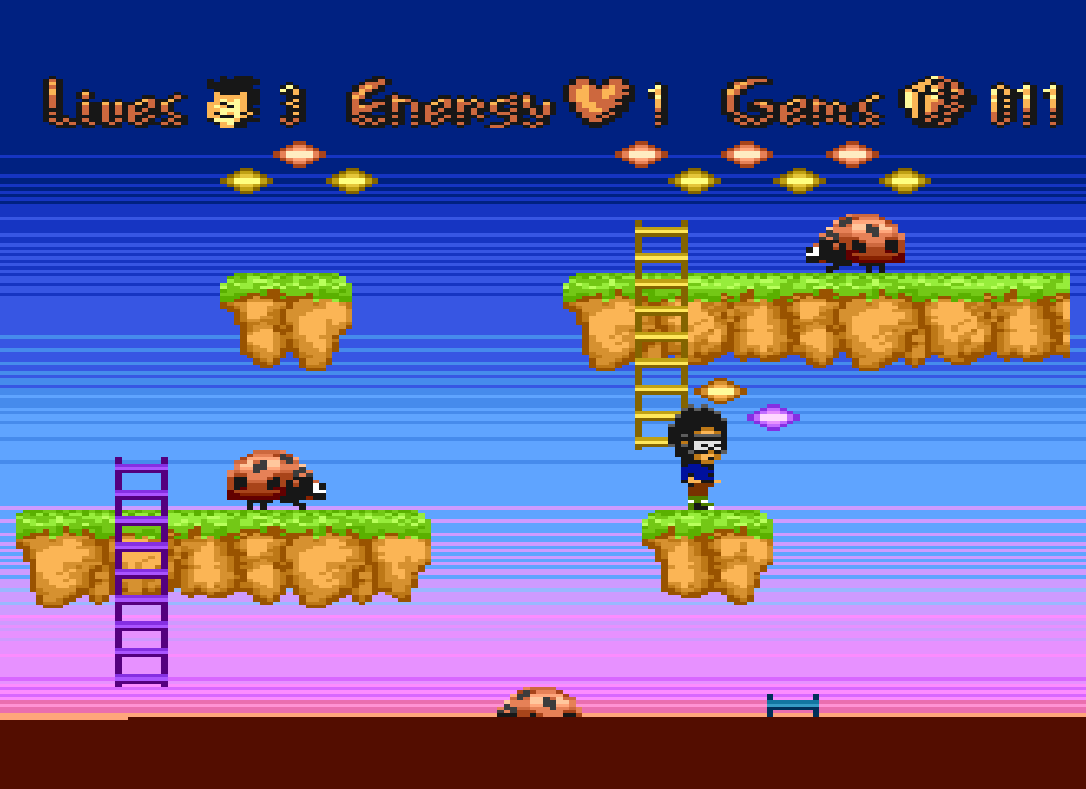 Так появился Albert. На протяжении 30 уровней главный герой должен собрать драгоценные камни, избегая контакта с огромными насекомыми. Платформер может похвастаться палитрой в 50 цветов, спрайтами с большим разрешением и прямой зависимостью дальности прыжка от скорости бега (которая тоже набирается плавно). Добиться такого результата автору удалось благодаря использованию языка MadPascal вместо ассемблера: по словам самого Януша, ему хотелось узнать — могут ли игры Atari быть красивее обычного. Ответ более чем утвердительный.