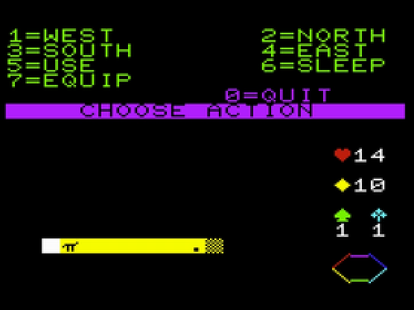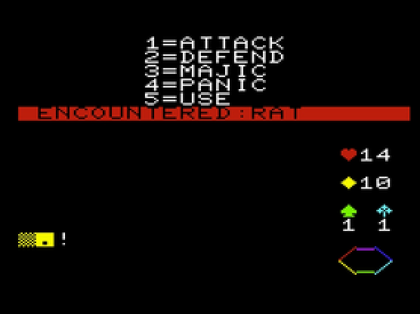 Справедливости ради, эта игра сделана для компьютера Commodore VIC-20, который вообще не может похвастаться хорошими графическими возможностями, поэтому предъявлять претензии к автору нет особого смысла. С другой стороны, главный герой здесь вообще выглядит как белый квадратик — это либо хитрый стилистический ход, либо откровенное нежелание что-либо рисовать. Хотя знаменитая Rogue выглядела даже хуже — и ничего, умудрилась стать легендой.
