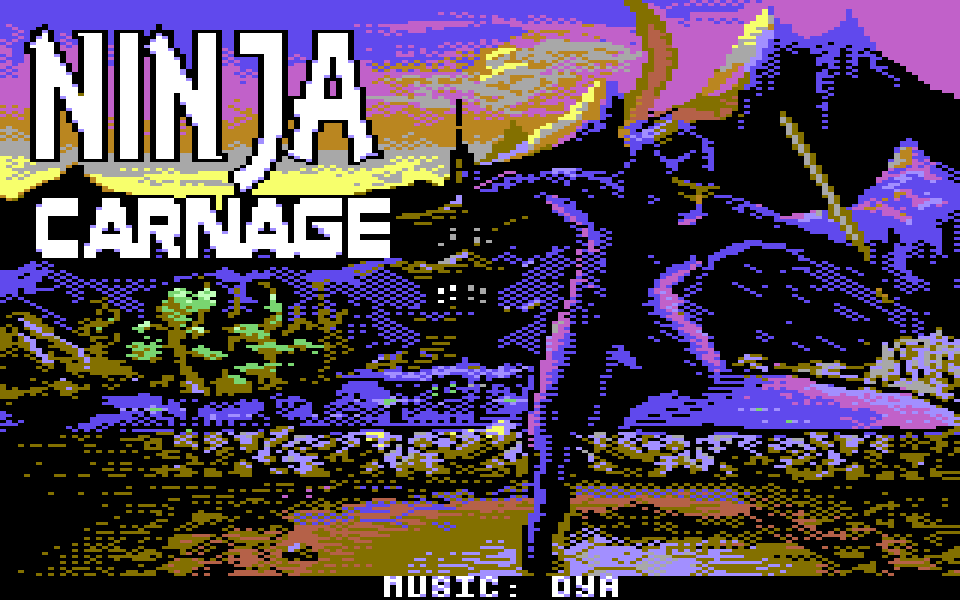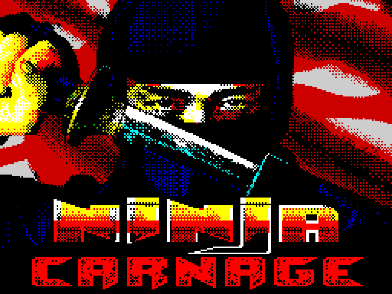 Клайв Таунсенд, известный нам как автор замечательной дилогии Saboteur, совсем недавно выпустил очередную игру про своих любимых ниндзя. Называется она Ninja Carnage и являет собой своего рода графический квест — даже с курсором, что редкость для восьмибитных платформ. В этой игре вы помогаете крутому и острому на язык ниндзя убить босса язудзы. К сожалению, пробраться к оному сложно, а ниндзя постоянно над вами издевается и вообще ни в грош не ставит. Так что придётся как следует набраться терпения — оно вам понадобится.