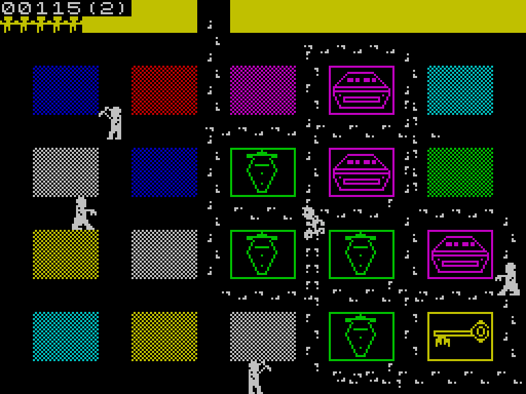 В 1984 году для компьютеров Amstrad CPC вышла аркада Oh Mummy, в которой нужно было бегать по гробницам и находить всякие соответствующие этому штуки — мумии королевской семьи, ключи и так далее. На каждом экране вам приходилось оббегать по периметру прямоугольные блоки в поисках предметов, необходимых для прохождения на следующий уровень. Когда вы их находили, открывалась дверь, и надо было до неё домчаться, не попавшись в лапы к разгуливающим повсюду стражникам.