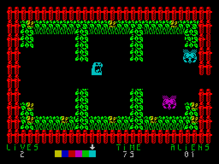 Атака цветной слизи в аркаде Chromanoids для ZX Spectrum