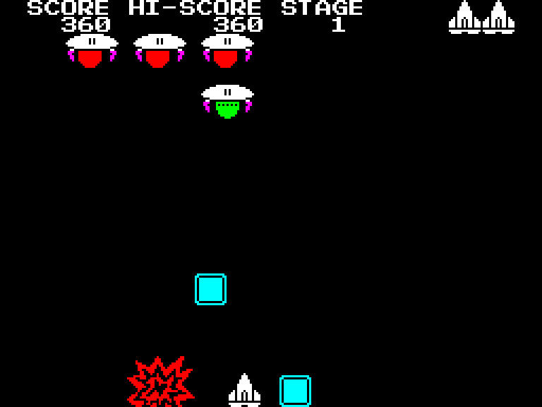 Игра представляет собой клон Space Invaders с одной забавной особенностью — перемещающиеся по экрану пришельцы сбрасывают вниз не только бомбы, но и блоки, которые мешают вашему кораблю передвигаться и уничтожаются только самими врагами. Это несколько меняет игровой процесс — приходится следить не только за тем, чтобы на вас сверху ничего не упало, но и маневрировать так, чтобы не оказаться зажатым между двух блоков.