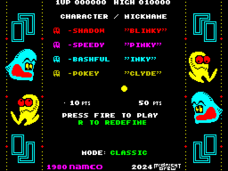 В последнее время стало модно делать клоны Pac-Man для ZX Spectrum, и неудивительно, ведь в своё время владельцы этого компьютера так и не получили по-настоящему качественный официальный порт.