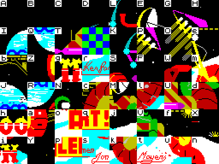 Геймлей остался прежним — сначала игра показывает вам картинку, потом показательно дробит её на квадратики и перемешивает, а вы должны собрать её обратно. Если у вас возникли сложности, то нажмите «Пробел» — на квадратиках появятся буквы, которые демонстрируют, в какой последовательности фрагменты должны стоять на картинке, начиная с левого верхнего угла. Сначала идут буквы от A до Z, потом — от a до z.