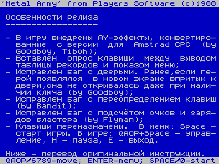 Умельцы Slider, tiboh и goodboy выпустили улучшенную и дисковую версию экшена Metal Army для ZX Spectrum.