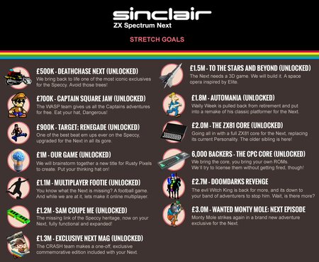 Две последних расширенных цели — Doomdark's Revenge (£ 2,7 млн) и Monty Mole: The Next Episode (£ 3,0 млн) — пока не достигнуты, но разработчики дали чёткое обещание: эти игры появятся на Next в любом случае: