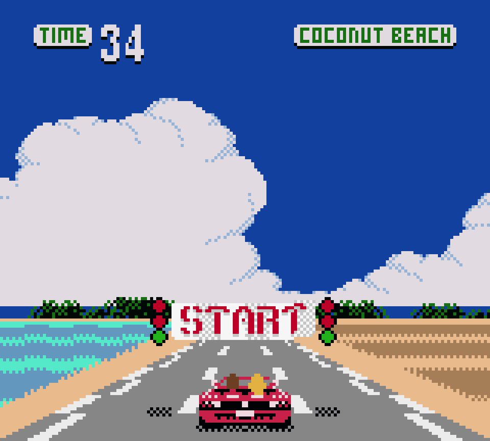 Маккафферти не новичок в создании портов классических аркад Sega. Ранее он уже выпустил Hero GP — адаптацию Hang-On для Game Boy. Логично, что следующей целью стала OutRun — ещё одна гонка от легендарного Ю Судзуки, вышедшая в 1986 году.