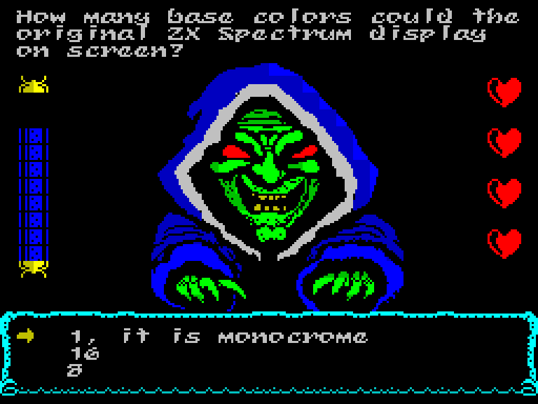 Загадок очень много, и они в целом довольно интересные. Варьируются они от «В какой модели ZX Spectrum впервые был использован чип AY-3-8912?» до «В какой игре для ZX Spectrum вы исполняете роль киборга-полицейского?». На все вопросы смогут ответить только самые большие знатоки «Спектрума»!