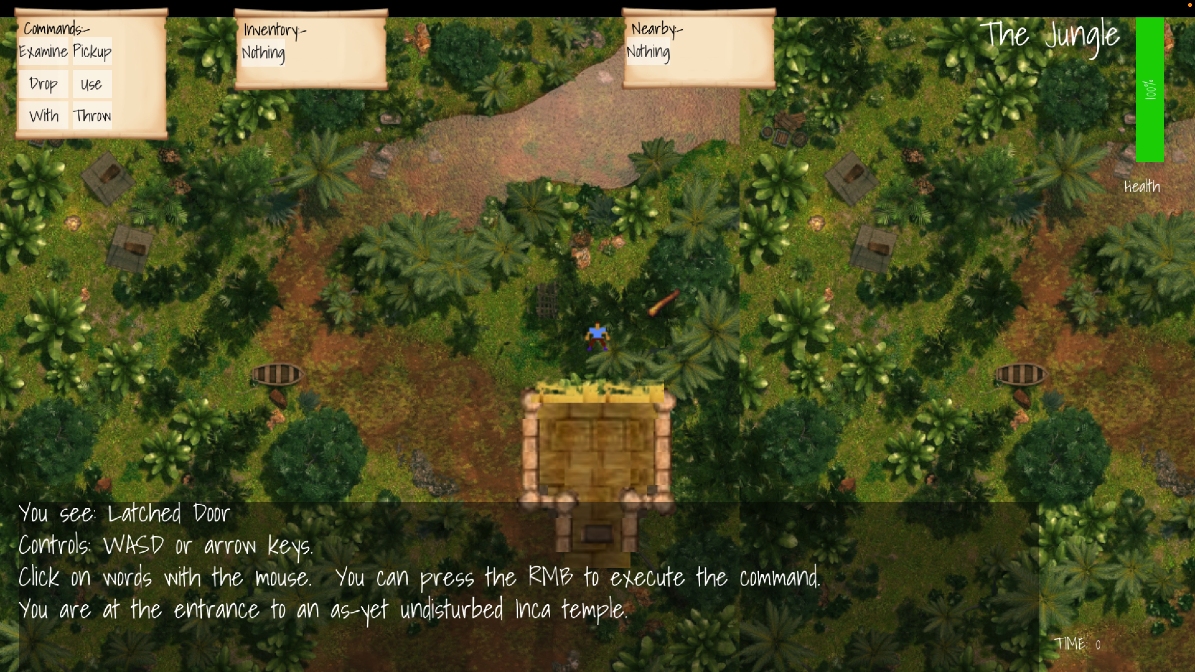 Управление не очень традиционное для старых квестов: стрелки или WASD для перемещения, клики по глаголам и существительным для составления команд. Команду можно выполнить либо нажатием кнопки Enter, либо правой кнопкой мыши. Некоторые предметы на карте можно выбирать прямым кликом — удобная модернизация. Графика в Inca Curse, к сожалению, не блещет, но со своей задачей справляется: понятно, куда идти и какой предмет лежит перед вами.