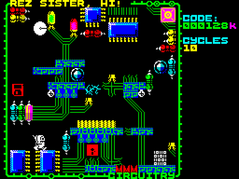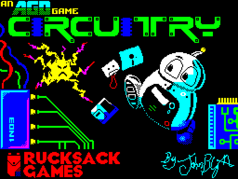 Джон Байф выпустил-таки свой платформер Circuitry для ZX Spectrum, созданный при помощи Arcade Game Designer и сильно напоминающий Manic Miner и Jet Set Willy, только с уклоном в электронику.