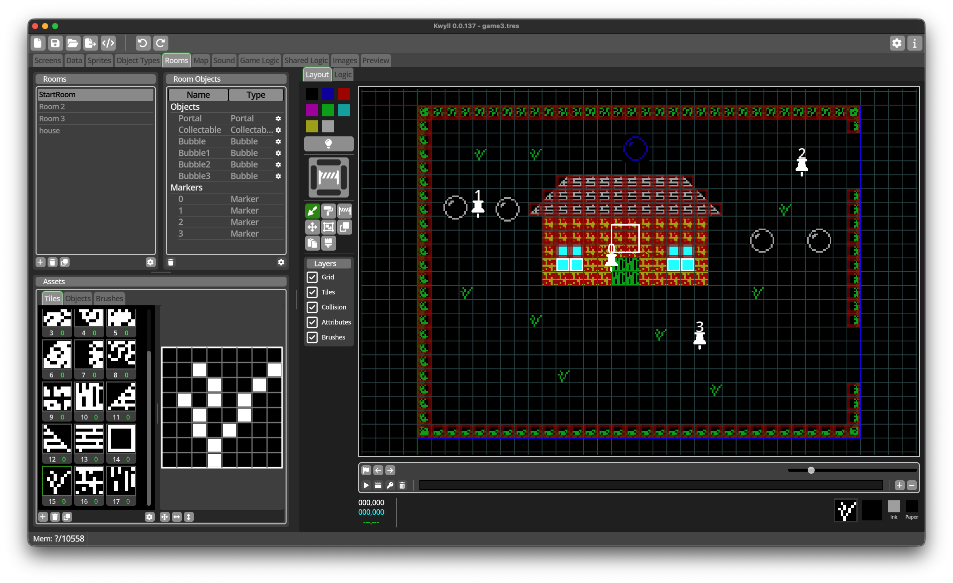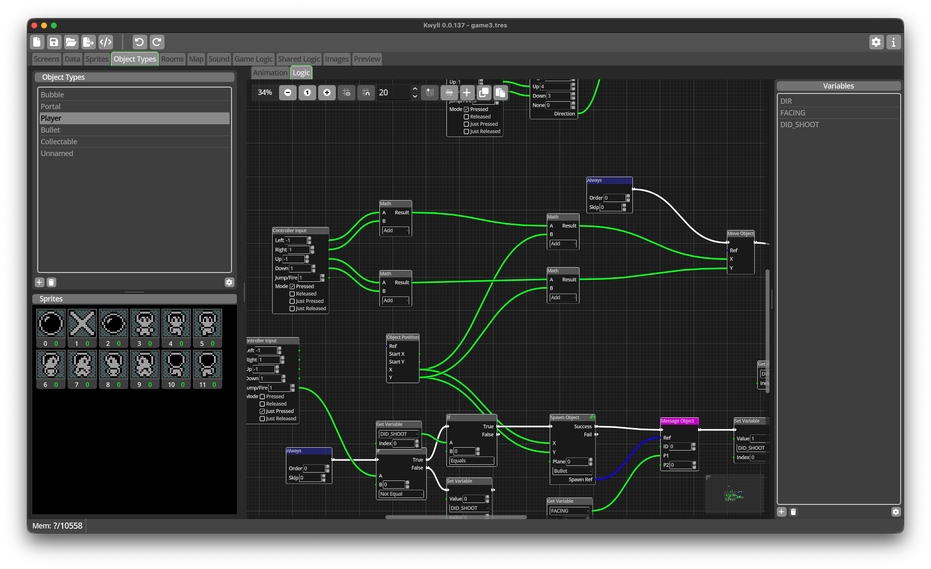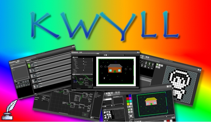 Kwyll предназначен не только для программистов — это визуальная среда разработки, которой могут пользоваться все желающие. Здесь есть простенький редактор графики, анимации и карт, а логику игр можно прописывать, расставляя специальные блоки и налаживая между ними связи.