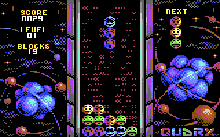 Игра называется Quarx и является клоном аркадной головоломки Xixit, которая изначально выходила на PC. Строго говоря, сама Xixit — чистейший клон Columns. Здесь в колодец тоже падают вертикальные фигурки из трёх цветных блоков: их нужно расставлять так, чтобы образовывались горизонтальные, вертикальные и диагональные линии из блоков одного цвета. Порядок цветных блоков в падающей фигурке можно менять, а ещё — перемещать их влево-вправо и ускорять падение.