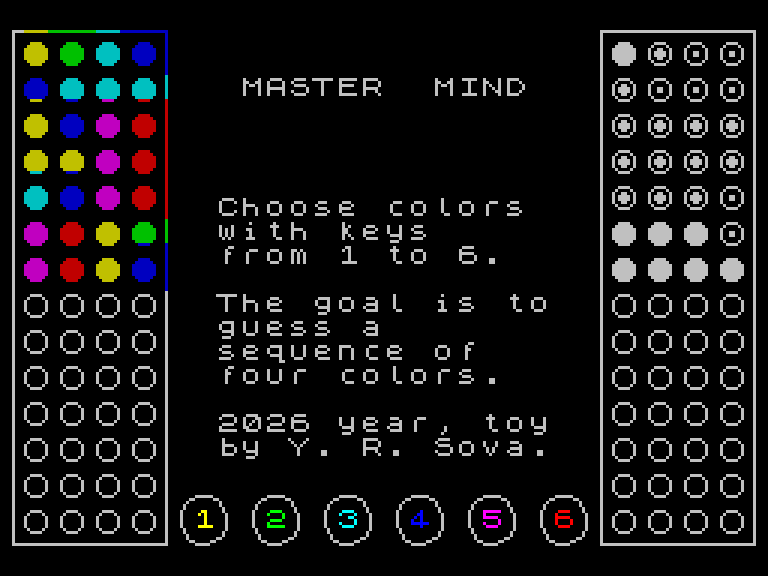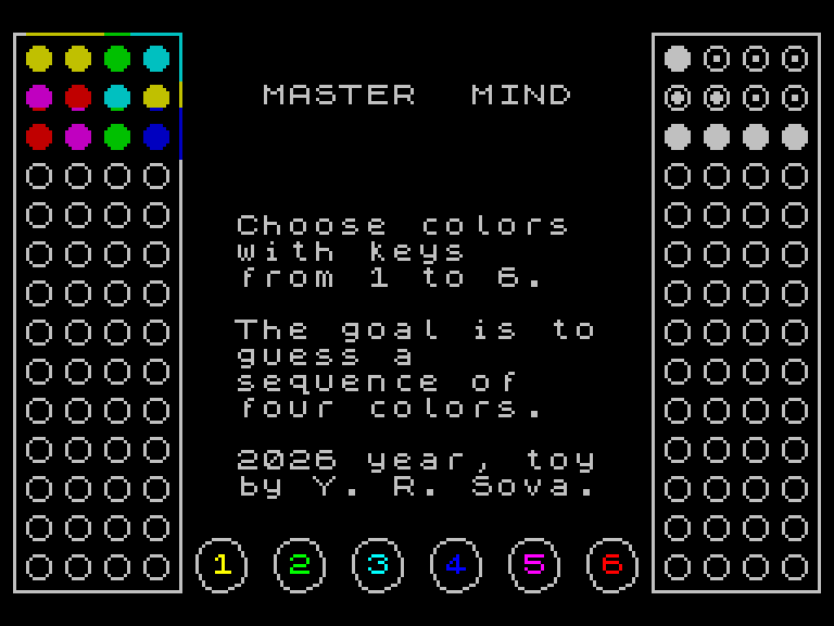 И первой игрой для ZX Spectrum в 2026 году становится головоломка Master Mind от разработчика Yevrowl.