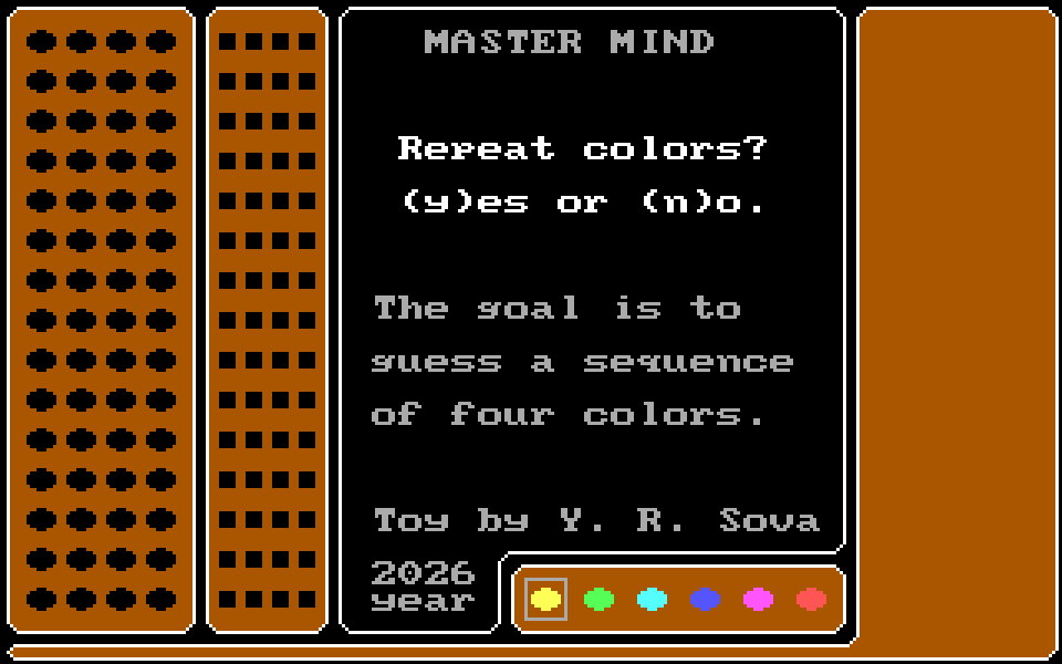💾 Master Mind доступа и на PC с графикой TGA и EGA: вот игра, вот исходники.