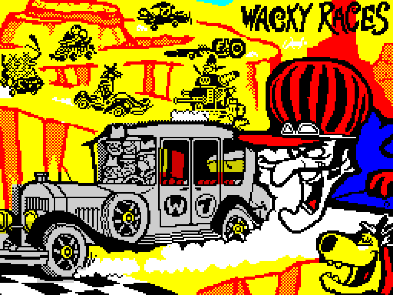 Одной из самых странных гонок на ZX Spectrum является, безусловно, Wacky Races. Цель на каждом уровне этой игры — прийти к финишу либо первым, либо вторым, вот только выглядит она как типичный платформер. Вид сбоку, горизонтальный скроллинг, даже прыжки — ну какие это гонки, ей богу?