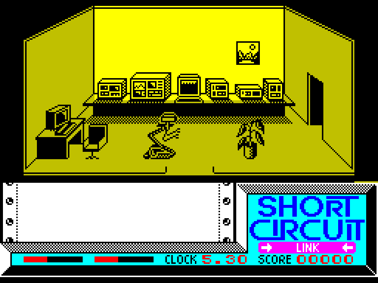 Short Circuit — неплохая игра по мотивам некогда известного фильма «Короткое замыкание». В ней вы управляете роботом по имени Джонни-5, который обрёл разум и теперь пытается доказать окружающим, что он не железка дрожащая, а право имеет.