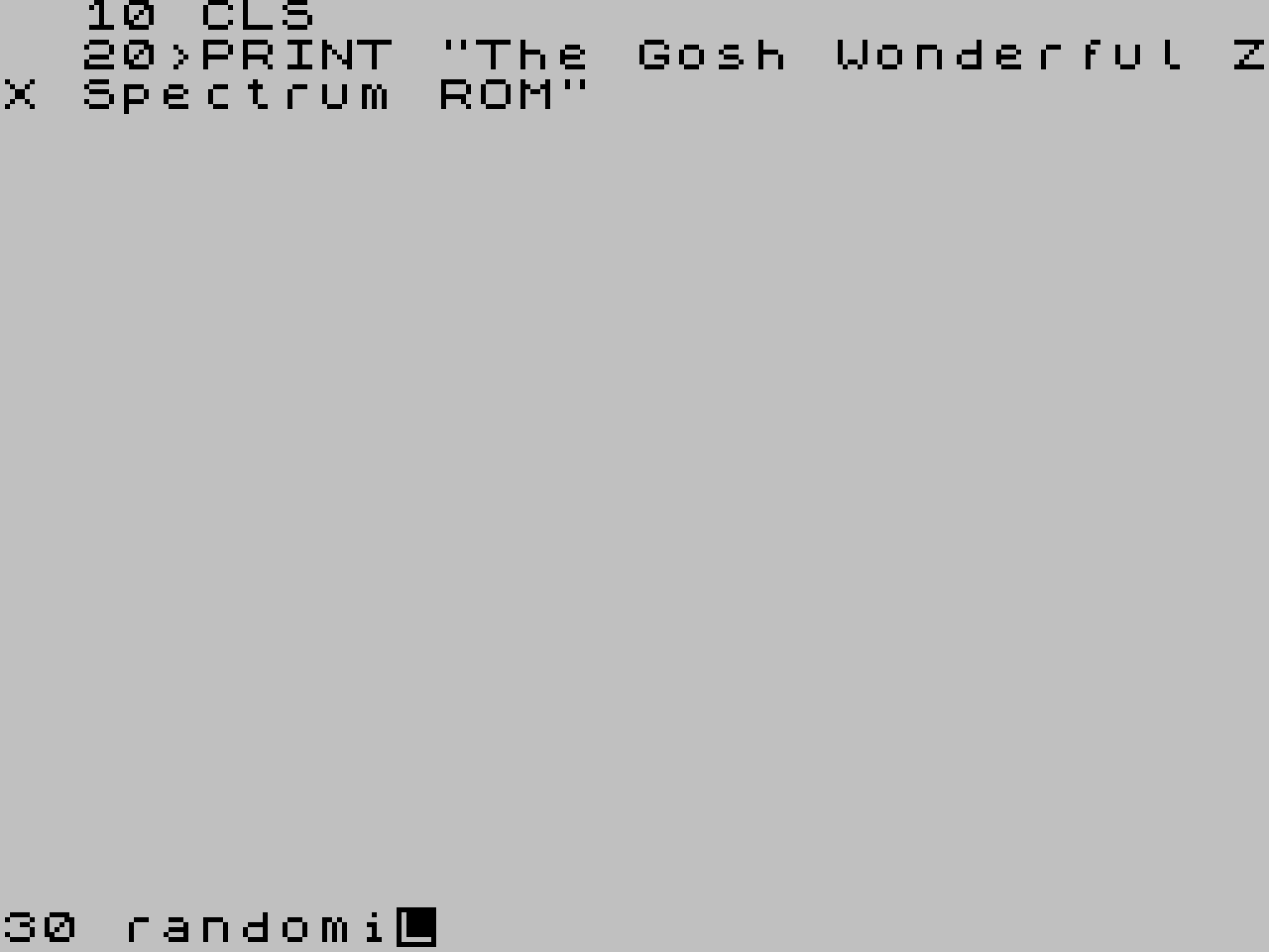 Например, режим побуквенного ввода команд в Sinclair BASIC можно включить в новом эмуляторе Spectral. Однако задолго до него — аж в 2004 году — Джефф Вермут реализовал решение для других эмуляторов и даже некоторых реальных компьютеров: The Gosh Wonderful ZX Spectrum ROM. А недавно у него вышла новая версия — 1.40.
