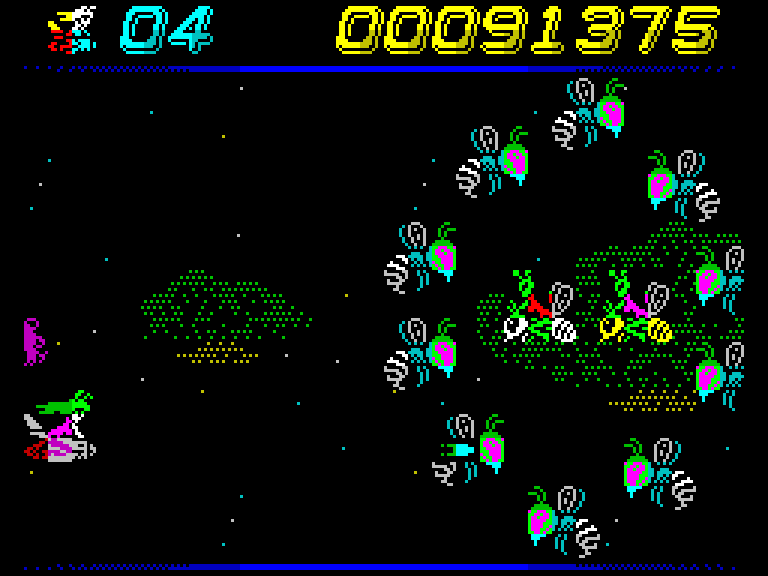 Уровней в игре ровно шесть, так что не соскучитесь. Кстати, всё это прекрасно работает на классическом ZX Spectrum 48K, больше памяти игре просто не требуется. В принципе, тут есть простор для улучшений: как минимум добавить AY-треки, чтобы немного разбавить полную тишину, прерываемую вашими выстрелами. Но и без этого — великолепная игра, срочно запускайте!
