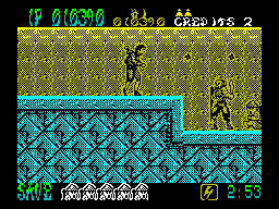 Экшен Shinobi был перенесён на ZX Spectrum в целом сносно. Да, плавность скроллинга оставляет желать лучшего, спрайты разработчики тоже могли конвертнуть с аркадного автомата поточнее, а плохая видимость вражеских пуль и прочих летящих предметов просто-напросто мешает.
