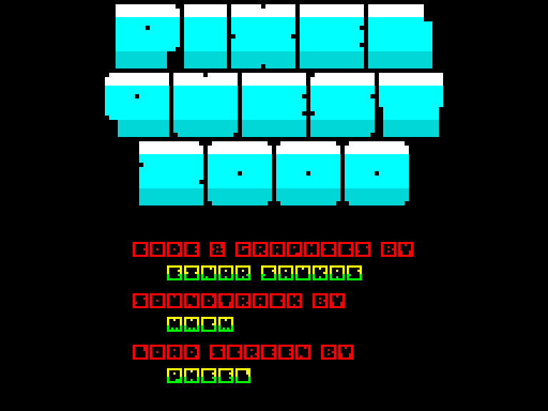 При этом в Pixel Quest 2000, разумеется, игроку придётся разгадывать не какие-то абстрактные картинки, а персонажей из новых игр для ZX Spectrum. Выглядит игра вполне симпатично (за исключением нечитаемого шрифта), а заставка за авторством Pheel и музыка от MmcM так вообще чудесные.