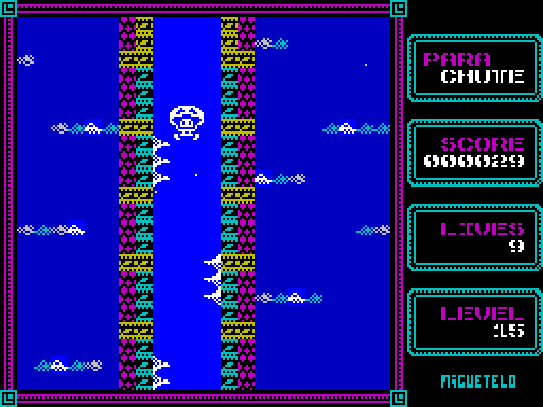 Оригинал был исключительно простой аркадой — в нём приходилось управлять парашютистом, который медленно опускается на землю в небе, заполненном самолётами, вертолётами, птицами и прочими опасностями. Правда, Мигуэтело решил усложнить задачу и добавил в игру разные уровни со стенами, потолками и кучей других объектов, так что эту конкретную версию Parachute можно смело назвать уже не ремейком, а чем-то вроде сиквела.