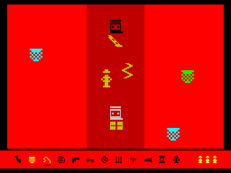 Лука Бордони совершил немыслимое (в том смысле, что такая мысль никому и в голову прийти не могла) — портировал на ZX Spectrum приключенческую аркаду Raiders of the Lost Ark, вышедшую в 1982 году на Atari 2600.