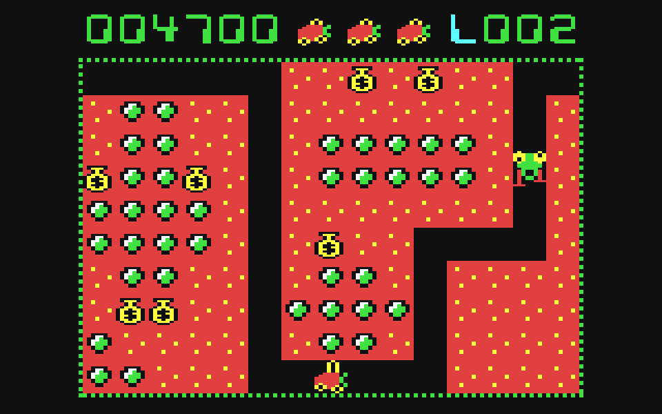 Цель игры — собирать золото и драгоценные камни, разъезжая в какой-то шахте на специальном агрегате, Диггермобиле. Вас при этом активно преследуют всякие нехорошие существа, столкновение с которыми ведёт к потере жизни. Но это ничего — на гадов можно сбрасывать мешки с золотом, а ещё, слопав вишенку на манер Пакмана, получить возможность убивать своих недругов.