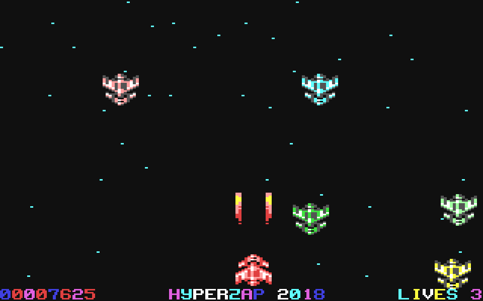 Вряд ли вас хватит больше чем на пару минут, но любопытства ради можете скачать игру с нашего сайта или с CSDb. Ах, да, программист по имени Джейсон Келк выложил исходники на GitHub, так что при желании вы можете превратить Hyperzap 2018 в полноценный скролл-шутер. Хотя проще уж написать свой.