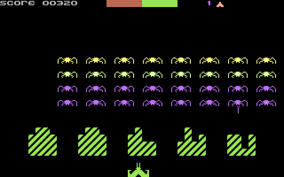 Геймплей самый что ни на есть знакомый — сверху на игрока спускаются стройные ряды межгалактических пауков, которых нужно отстреливать, стратегически используя укрытия и изредка активируя энергетический щит. Пауки, в свою очередь, стреляют в ответ и двигаются всё быстрее и быстрее.