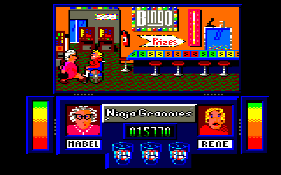 Ninja Grannies — очень странный файтинг, бойцами в котором выступают самые натуральные бабушки и дедушки. Его делали сразу для CPC, ZX Spectrum и вроде бы даже для Commodore 64. Демоверсию Дин со товарищи разослали по всевозможным издательствам, но почему-то никто ею не заинтересовался. Игра, конечно, никак не тянет на шедевр, но в мире, где существует файтинг Ninja Hamster с хомячками и мышками, такое положение вещей можно смело назвать вопиющей несправедливостью.