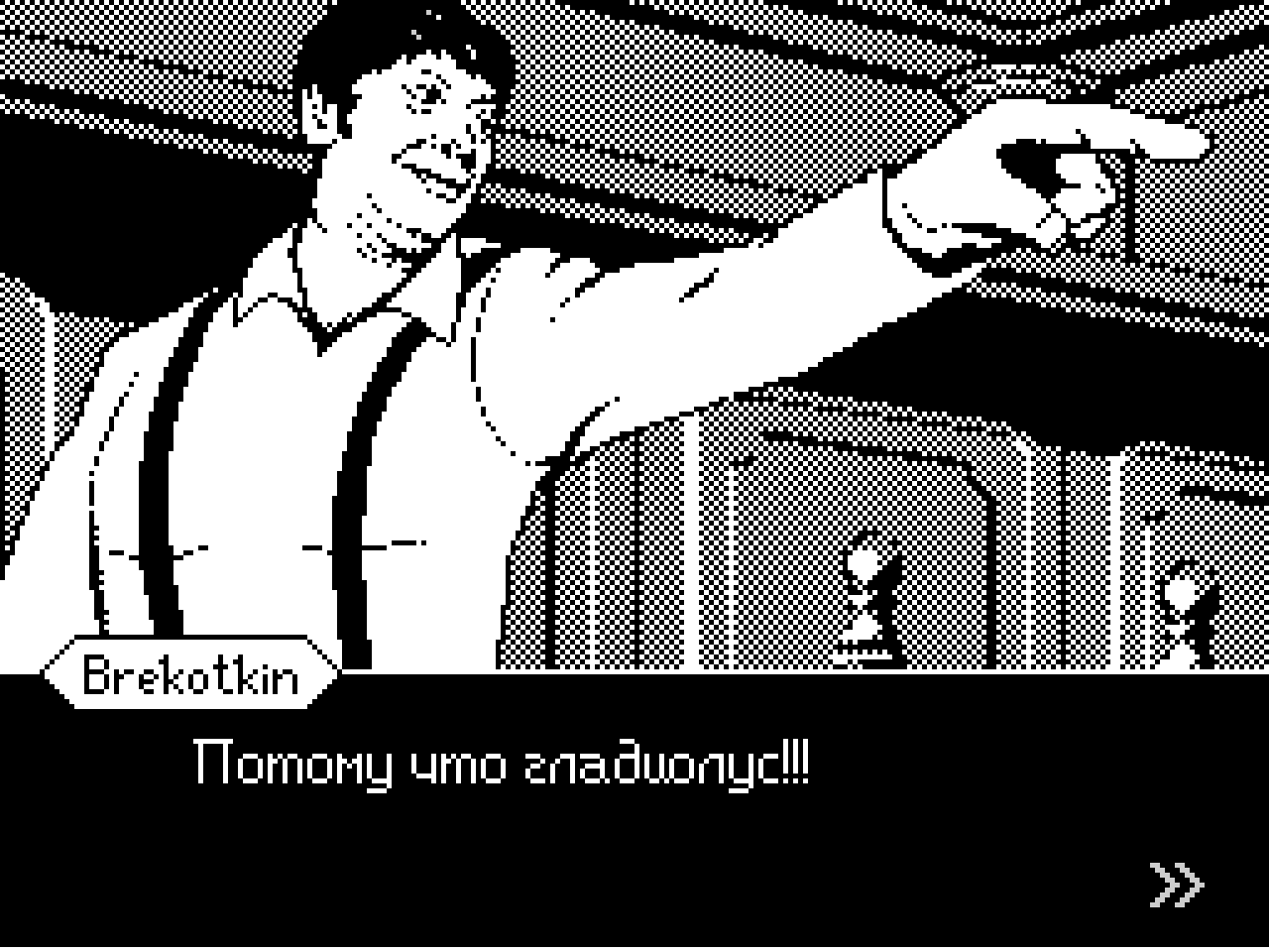 А вот и смешной мокап от Артёма Топчего: серия Phoenix Wright (она же Ace Attorney) на ZX Spectrum, но с Дмитрием Брекоткиным и его коронной фразой: «Потому что гладиолус»! Спасибо конкурсу @zxgfx compo #12 за это.