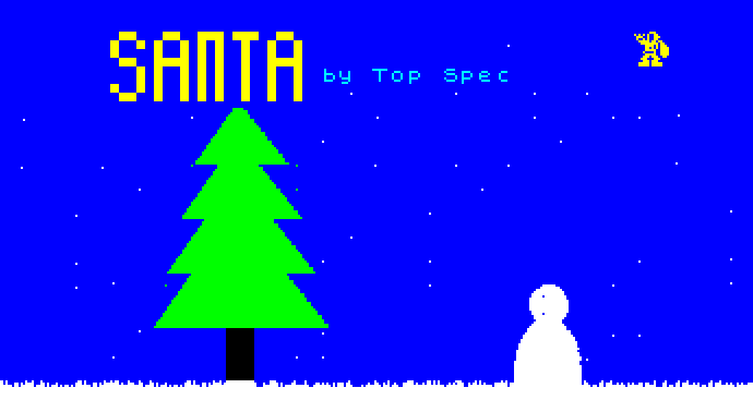 Santa (1987) — аркада, в которой сначала нужно управлять летящем на своих санях Сантой и собирать подарки, избегая столкновения со всякими препятствиями (сани поднимаются или опускаются клавишами Q и A), а потом — сбрасывать эти подарки в дымоходы (клавишей 0).