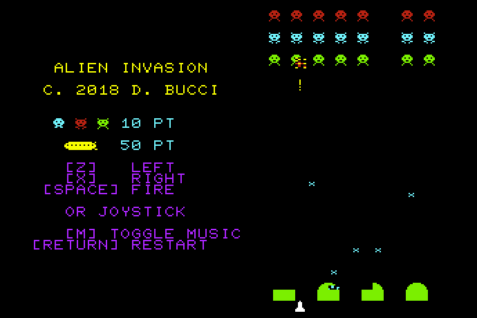 Как гласит одна древняя китайская пословица, каждому ретро-компьютеру положено иметь десяток-другой клонов Space Invaders, иначе это не ретро-компьютер, а какое-то недоразумение. На VIC-20 подобного добра хватает, но лишний экземпляр ещё никому никогда не мешал.