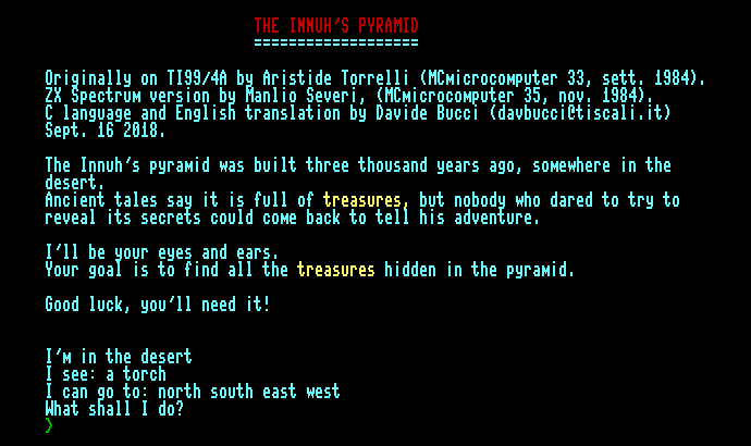 Итальянский программист Давиде Буччи портировал на практически все восьмибитные компьютеры Commodore текстовый квест Innuh's Pyramid, изначально выпущенный на TI99/4A, а потом на ZX Spectrum под названием La Piramide di Iunnuh.