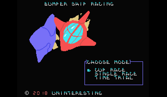 Умелец с форума сайта MSX Resource Center, скрывающийся под ником Uninteresting, делает одноэкранную гоночную аркаду Bumper Ship Racing с маленькими, разноцветными и плавно крутящимися вокруг своей оси бортующимися корабликами.