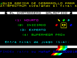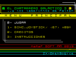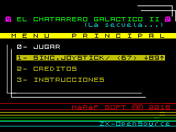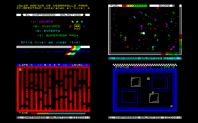 Ну а нас интересует три игры, которые Рафа создал в качестве примера. Они объединены в трилогию El Chatarrero Galáctico и даже связаны каким-то общим сюжетом — его, опять таки, можно изучить по вышеприведённой ссылке. Сами игры очень простенькие, но работают шустро — спасибо компилятору Mcoder 3.