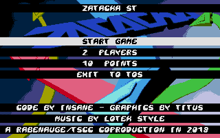 Zatacka ST, которую мы представляем вашему вниманию сегодня, отличается от остальных тем, что поддерживает до 4 игроков и запускается на Atari ST (да, это ещё одна участница конкурса Silly Venture 2018). В силу своей вторичности высокого места Zatacka ST не заняла, ведь авторы этой версии просто перенесли на новую платформу свой же порт под Commodore 64, вышедший годом ранее. Мультиплеер, впрочем, всё так же хорош. Скачать игру вы можете на нашем сайте. А вот и видео с геймплеем: