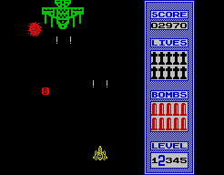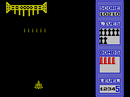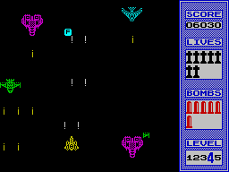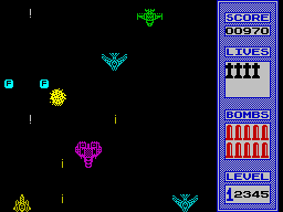 Студия с неблагозвучным названием Penisoft ещё в 2003 году выпустила этот скролл-шутер на PC, а сейчас портировала его на ZX Spectrum. Спектрумист из художника и программиста MadAxe, судя по всему, не очень, поэтому игра выглядит очень простецки, все объекты перемещаются по знакоместам (даже выстрелы, которые умудряются перекрывать собой бонусы), да и скроллинг тоже, мягко говоря, не попиксельный.
