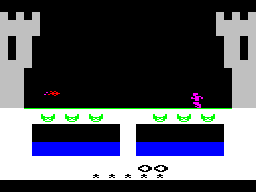 Суть Dragonfire ZX до безобразия проста: на одном экране вам нужно пробежать по мосту в замок, уворачиваясь от пламени засевшего там дракона (то есть приседая или прыгая), а на другом — собрать все сокровища в помещении, тоже пытаясь не попасть под драконью раздачу. И так — много, очень много раз.