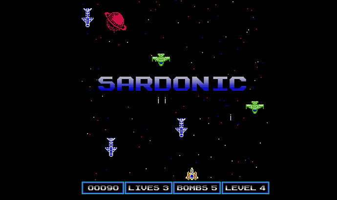 Встречайте Sardonic — игру, о которой мы писали ещё в январе, когда она выходила на ZX Spectrum. На этот раз программист Хосе Марио Мачадо (MadAxe) решил освоить более мощный компьютер (впрочем, первая версия вышла вообще для Windows), и хотя графику прокачал не очень сильно (ну не художник он, не художник!), геймплей оставил более-менее прежним. А значит, пройти этот скролл-шутер можно минут за 15, если не меньше.