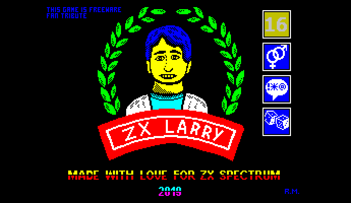 Многого мы ждали от конкурса ZX Dev MIA - Remakes, но только не демейка самой первой игры про Ларри Лаффера! Да, представьте себе, ZX Larry — это именно упрощённая, но очень близкая к оригиналу по сюжету и геймплею версия графического квеста Leisure Suit Larry in the Land of the Lounge Lizards, вышедшего в 1987 году на IBM PC и Apple II, а потом портированного на несколько других плафторм.