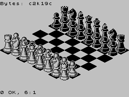 Большой любитель шахмат и «Спектрума» Алекс Гарсия некоторое время назад задался целью написать самую маленькую на свете шахматную программу для своего любимого компьютера, которая по размеру сможет обскакать даже легендарную 1K ZX Chess для ZX81. Та, напомним, использовала для работы всего 672 байта, хотя поддерживала практически все шахматные правила, за исключением рокировки, превращения пешек и взятия на проходе.