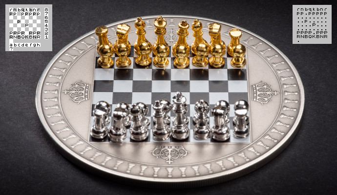 Разумеется, эта базовая версия выглядит, мягко скажем, не очень представительно — там даже доска не в клетку, а компьютер не умеет проверять правильность хода игрока. В средней версии, которая весит 462 байта, эта проверка уже встроена, плюс разрешены рокировка, превращение пешки, пропуск хода и смена сторон. Наконец, в полной версии размером аж целых 506 байт доска уже похожа на шахматную, а вертикали и горизонтали помечены соответствующими цифрами и буквами.