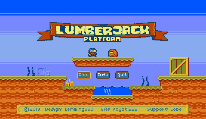 Новый релиз называется Lumberjack Platform, и это, как несложно догадаться, платформер, в котором нужно бегать по экрану и бросаться топором во врагов, которые вообще-то никого не трогают и спокойно бегают себе взад-вперёд. Бедолаги после такого обращения почему-то превращаются в охапку дров — их надо подбирать, чтобы в конце-концов открылась дверь на следующий уровень.
