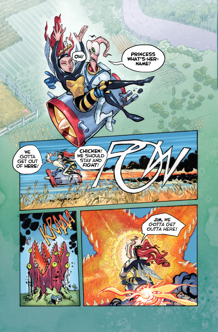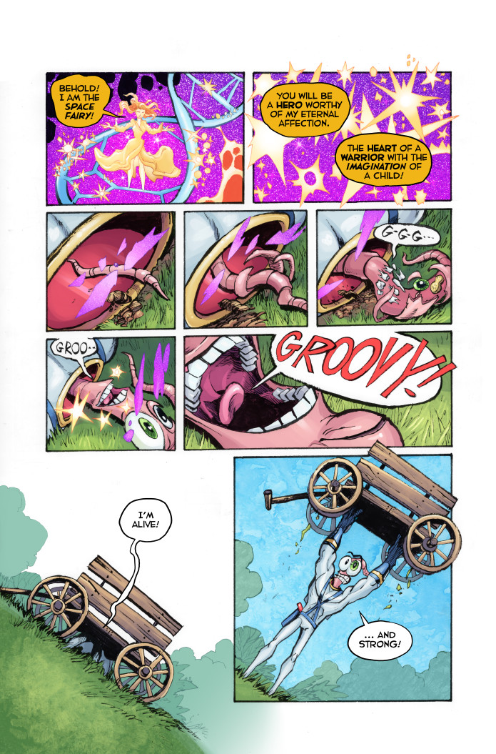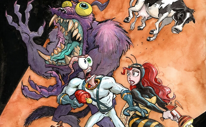 О чём конкретно будет комикс, Дуглас не пишет, но обещает сделать из него настоящее «Любовное письмо фанатам». Зато он показал обложку и несколько страниц из Launch the Cow — полюбуйтесь на эту красоту:
