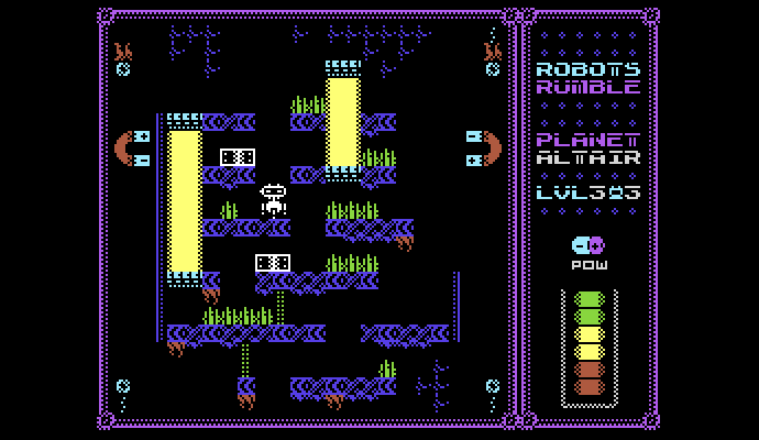 В принципе, версия для Commodore 64 от оригинала ничем, кроме цветовой гаммы, принципиально не отличается. Управление — такое же, уровни — те же, даже музыка перенесена из оригинала. Так что если вы хотели сыграть в Robots Rumble, но почему-то не желали связываться по «Спектрумом» (всякое бывает), то пользуйтесь случаем и качайте игру с нашего сайта. Варианты для VIC-20 и Plus/4 появятся чуть позже.