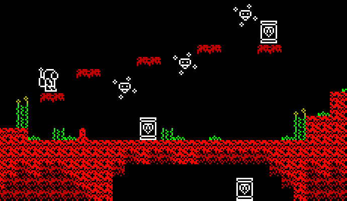 Сначала наш герой умеет только прыгать что твой Уилли и подбирать исключительно лежащие на поверхности кристаллы. Однако потом он находит реактивный ранец, позволяющий забираться в недоступные ранее места, бур, с помощью которого можно просверливать отдельные стены, и несколько разноцветных ключей, открывающих соответствующие двери.